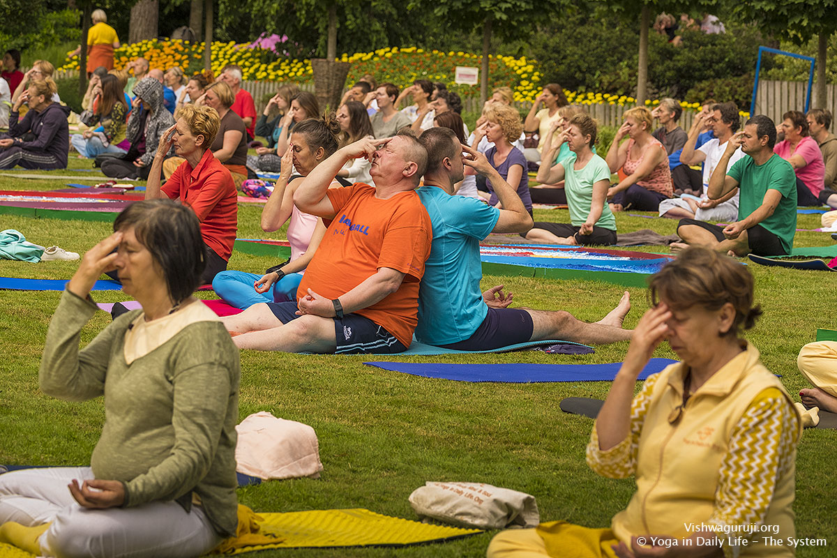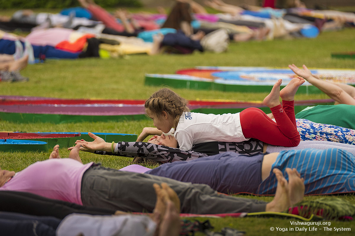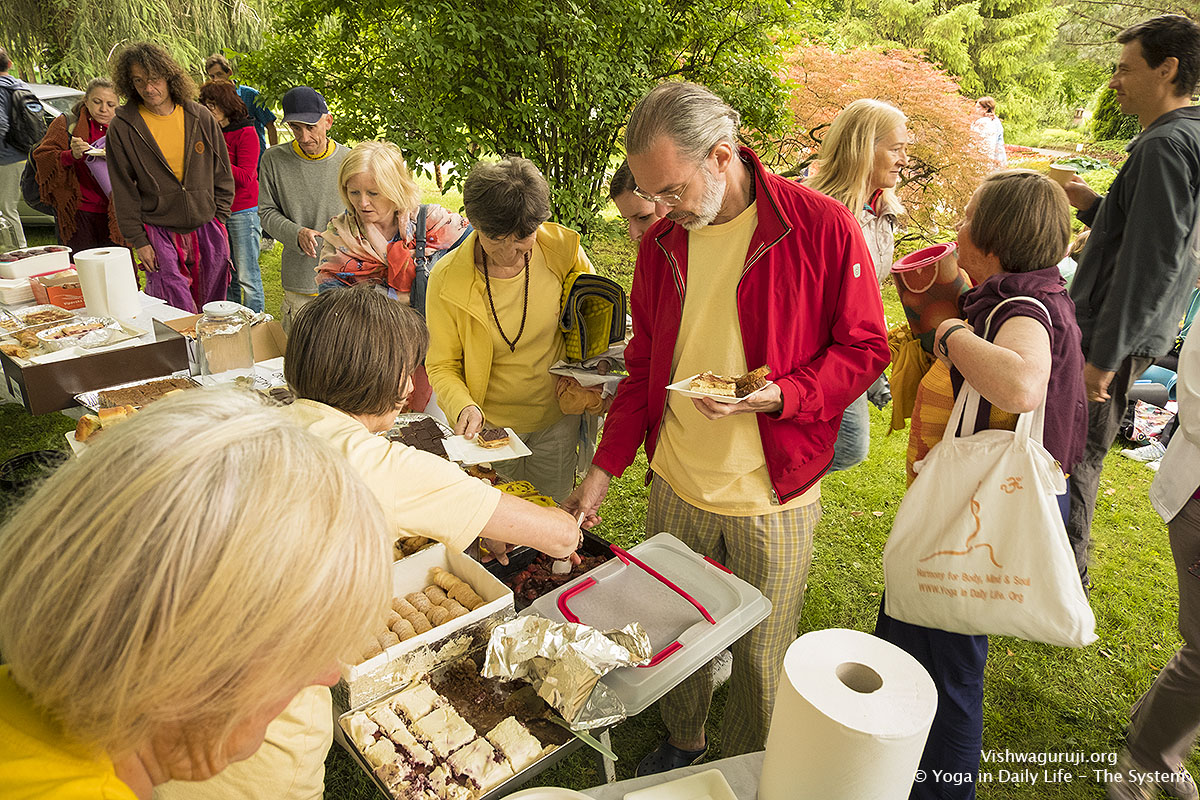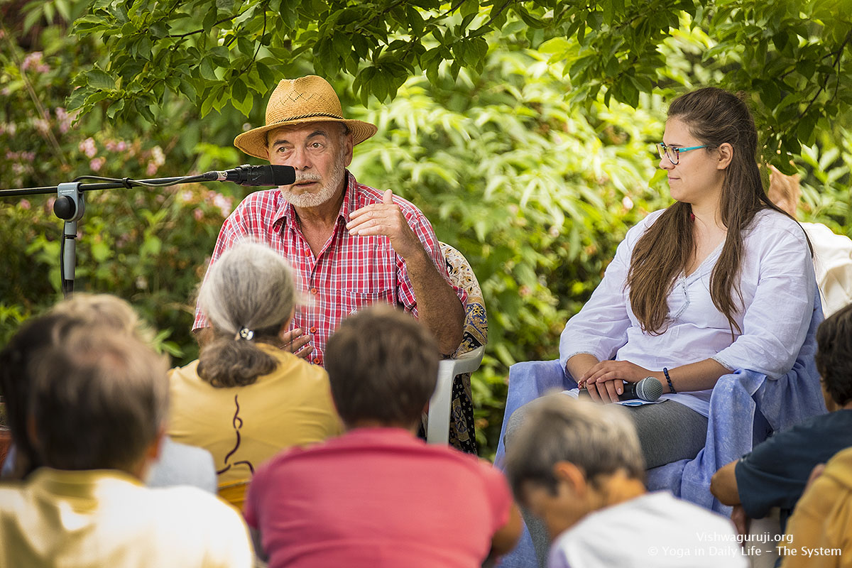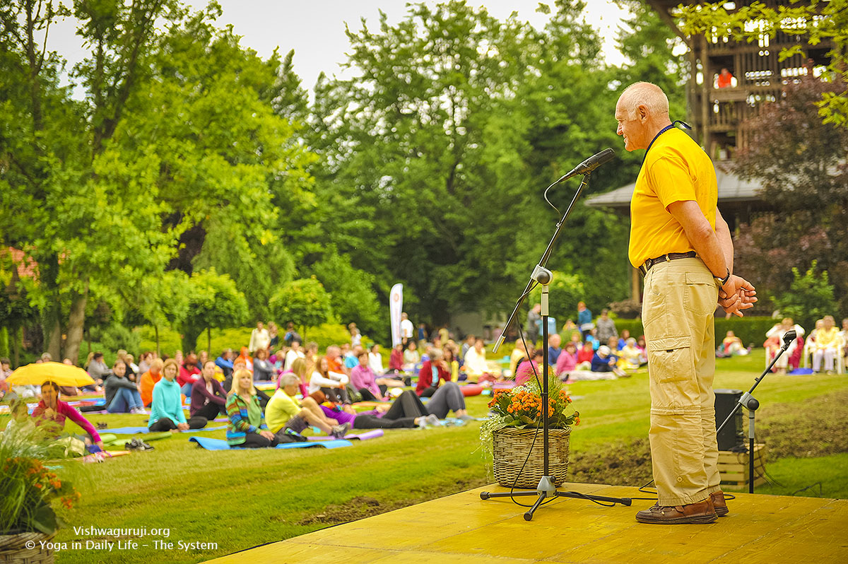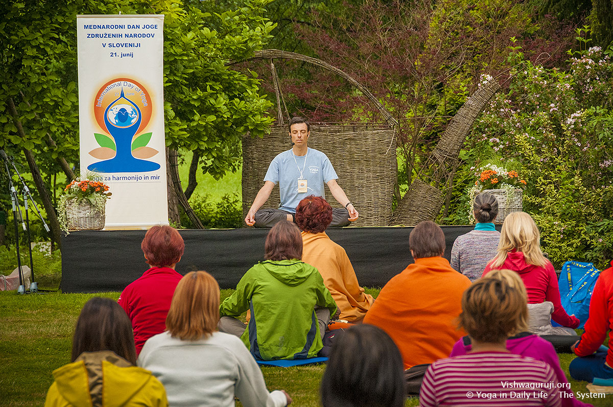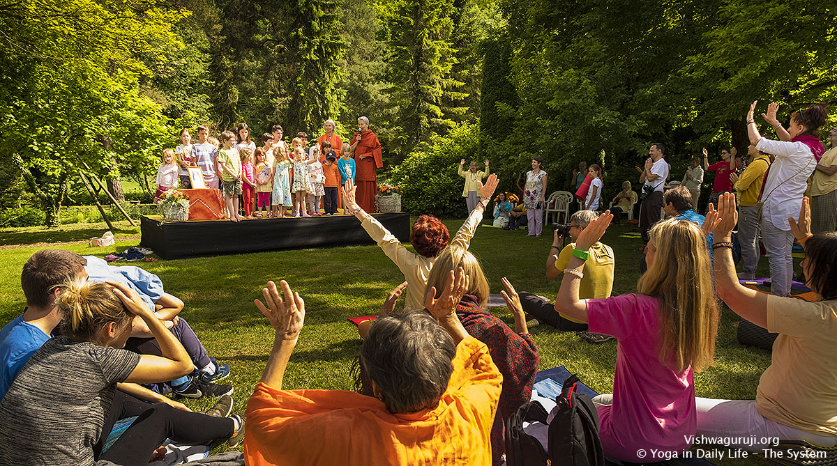 Dan se je pričel z meditacijo, nadaljevas pozdravnimi nagovori g. Jožeta Srake, predsednika Zveze joga društev Slovenije in g. Iva Suhoveršnika, župana občine Mozirje. Prisotna je bila tudi gospa Barthi Gupta, odpravnica poslov Indijske ambasade v Sloveniji. Sledila je vadba na livadi pri čakrah in nato predavanje Swami Umapuri, učiteljice Joge v vsakdanjem življenju in dolgoletna učenka Vishwagurujija Paramhanse Maheshwaranande. Celodnevni program z delavnicami, petjem in jogo so imeli otroci. Sadhvi Savitri iz Kopra je vodila jogo za zlata leta in tudi za tiste najmlajše. Festival so obogatili številni razstavljalci in ponudniki, s predavanji pa tudi Anton Komat, dr. Mani, Marija Kočevar in dr. Biljana Dušić. Nasvidenje naslednjič!