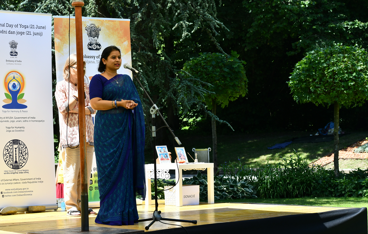 Program je bil tudi del 2. Festivala joge in dobrega počutja »Surya«, ki ga drugo leto zapored organizira Veleposlaništvo Republike Indije v RS po več krajih v Sloveniji. Njena ekselenca, ga. Namrata S. Kumar, veleposlanica Republike Indije v Sloveniji, je v svojem nagovoru poudarila pomen joge kot prakse, ki že leta pomaga celotnemu človeštvu. »Tema letošnjega Mednarodnega dneva joge je Joga za človeštvo. S tem želimo poudariti dobrobiti znanosti joge za zdravo in zadovoljno življenje vsakega posameznika, saj joga s svojim univerzalnim pristopom lahko pomaga vsakomur, ne glede na spol, starost, raso in veroizpoved. Letošnje leto ni pomembno le zaradi 8. praznovanja Mednarodnega dneva joge, 75. obletnice neodvisnosti Republike Indije, temveč je hkrati 30. obletnica diplomatskih odnosov med Slovenijo in Indijo.«