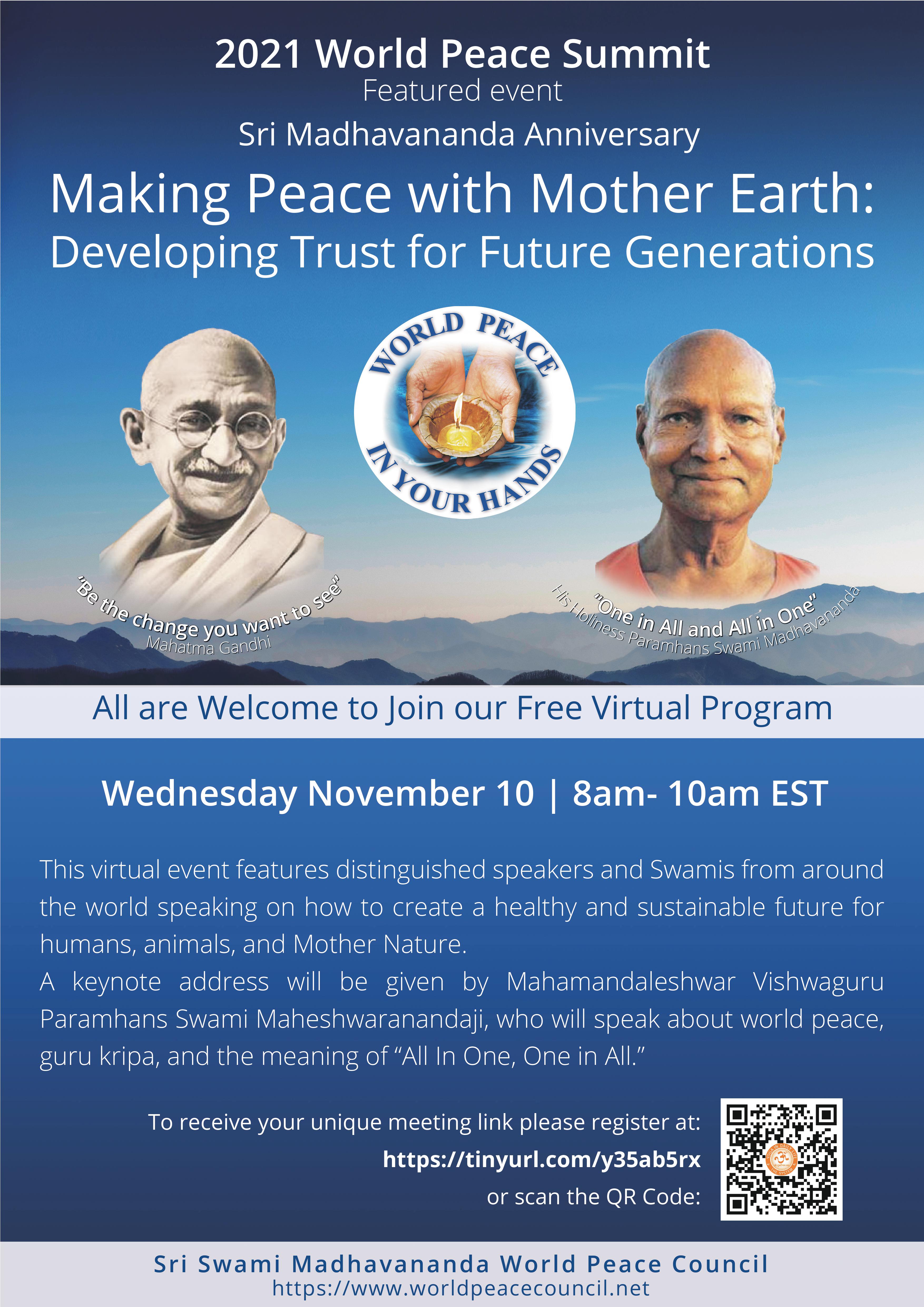 »Bodi sprememba, ki jo želiš videti v svetu« spoštovanega Mahatme Gandija in »Eden v vsem in vse v enem« nesmrtnega Paramhansa Svamija Madavanande sta brezčasni usmeritvi, h katerim bi moralo človeštvo stremeti.