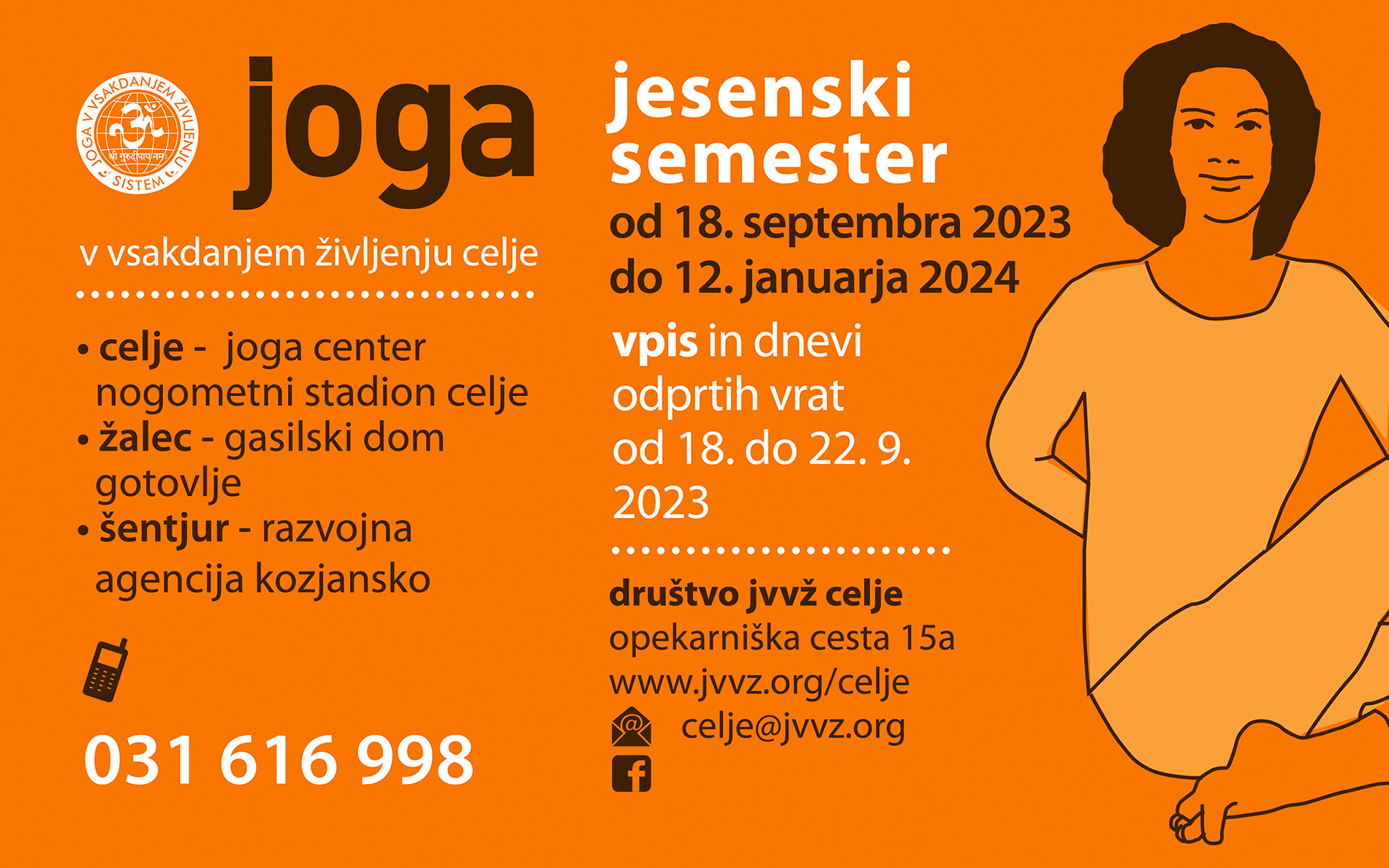 - vadba bo v sredo, 29. oktobra 2025, od 9.00 do 10.30 v Joga centru Celje.