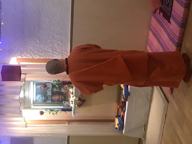 V približno uri in pol druženja si ogledamo projekcijo Vishwagurujijevega predavanja, prisluhnemo izkušnjam posameznikov, zapojemo molitev in se pogostimo s prašadom.