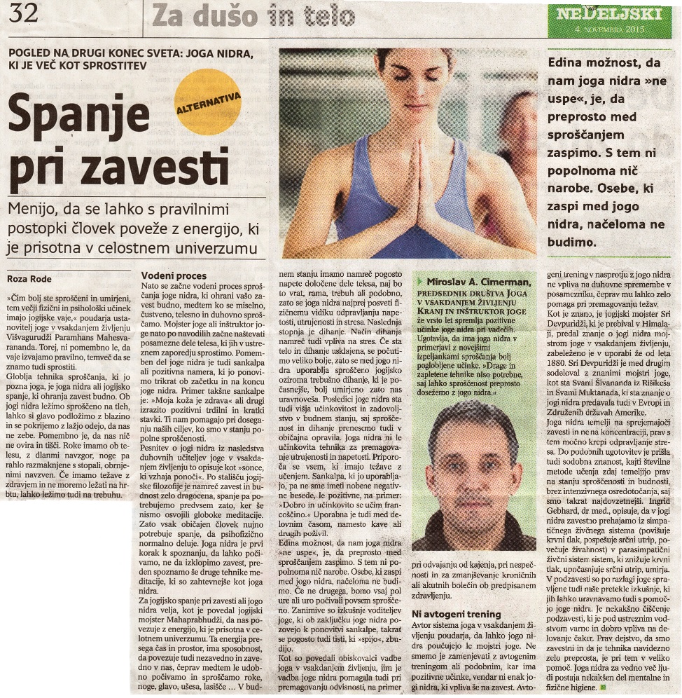| 4.11.2015 | Nedeljski dnevnik | Joga nidra: spanje pri zavesti |